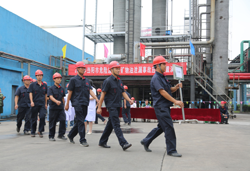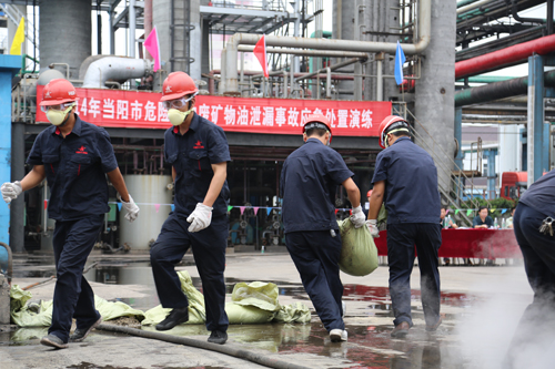 8月29日下午,随着演练总指挥宣布“当阳市危险废物废矿物油泄漏事故应急处置演练开始”的一声令下,由市人民政府应急办、市环保局、市公安局消防大队及我公司联合举办的2014年当阳市危险废物废矿物油泄漏事故应急处置演练拉开帷幕。工艺处置、安全警戒、消防救援、环境监测等演练小组迅速进入实战抢险救援状态。经过40分钟奋战,各演练小组按照既定方案顺利完成堵漏、消防灭火、环境监测等抢险救援工作。