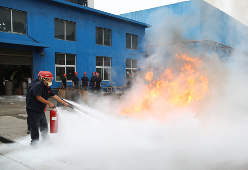 应急小组使用灭火器灭火