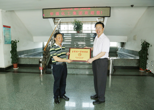 5月20日,宜昌市总工会党组书记、常务副主席罗志勇在市人大副主任、市总工会党组书记、常务副主席苏琼等陪同下来到我公司,亲手将宜昌市总工会授予我公司的宜昌五一劳动奖状交到公司常务副总经理赵鹏程的手中。