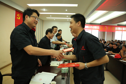 大会由党委副书记、工会主席王建波同志主持。首先,公司党委委员、常务副总经理赵鹏程同志宣读了公司党委表彰通报,一是授予生产一支部、生产三支部“先进基层党组织”称号;二是授予张春华、史金松、陈虎、袁 江、周 玉、任伟伟、刘 新、孙小鸣、徐峰、魏可萍、陈 平、张其辉“优秀共产党员”称号;三是授予叶锦华、姜红“优秀党务工作者”称号。会上,公司党委还组织4名新党员进行了入党宣誓仪式。新党员代表陈华益、入党积极分子代表肖雷刚在会上分别发言。
