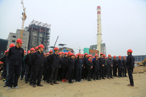 热电厂工作人员正在为参观的青工们介绍热电厂情况