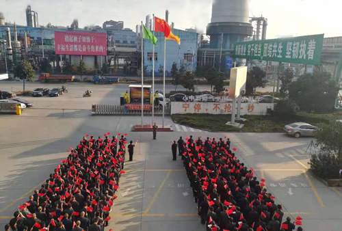 “我和我的祖国 ,一刻也不能分割,无论我走到哪里,都流出一首赞歌,我歌唱每一座高山,我歌唱每一条河,袅袅炊烟 ,小小村落,路上一道辙,我最亲爱的祖国 ,我永远紧依着你的心窝,你用你那母亲的脉搏和我诉说.....”全体人员身穿整齐的工装,合着音乐的节奏,挥舞着手中国旗,齐声高唱《我和我的祖国》,把对祖国母亲的祝福和热情尽情释放出来,场面十分壮观。此时,每个人的内心都激情澎湃,就像燃烧着一团火,歌唱着国家的富强、人民的幸福和社会的安定,为拥有今天的美好生活而骄傲和自豪!