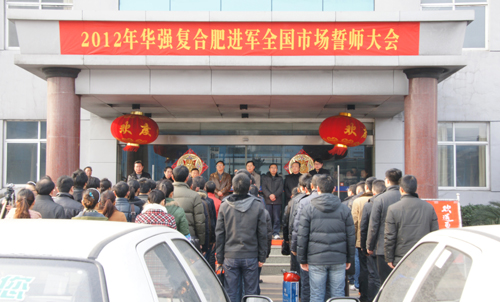 农历正月初八,华强农贸公司在生产销售大楼门前隆重召开“华强复合肥进军全国市场誓师大会”。集团公司董事长余华强率公司全体领导出席大会,余董事长发表重要讲话,集团公司副总经理兼农贸公司总经理周栋梁作出征动员。农贸公司50余名磷复肥销售精英排成6路纵队,聆听战前动员。张华斌、李春林、肖三溢分别代表销售团队表决心。紧接着,在轰鸣的鞭炮声中,各路营销精英驾驶公司为他们配备的10辆轿车奔赴全国各个市场。