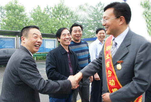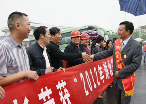 4月28日,公司董事长、总经理余华强同志荣获2012年湖北省劳动模范荣誉称号,近200名干部员工冒雨到当阳东高速路口迎接余董事长载誉归来