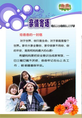 当充满浓浓亲情的安全寄语和全家福的照片映入眼帘的时候,工作中就少了抵触情绪,在轻松的气氛中潜移默化接受安全教育,不断营造亲情安全文化氛围,努力提高员工的安全意识。让安全意识扎根心中,时时警钟长鸣。