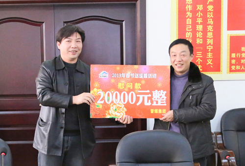 慰问团领导对我公司2012年度所做的工作给予了充分肯定,并代表晋煤集团向我公司发放慰问金2万元。会议结束后,刘书记一行领导在我公司领导的陪同下,到造气车间困难员工王帮权家中进行了慰问,并送去慰问金。